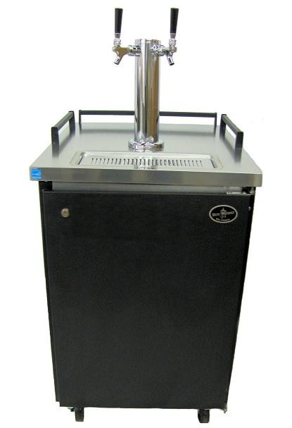 This model comes standard with a black wear resistant vinyl on steel exterior. The top is made from heavy-duty stainless steel and includes glass rails. The integrated drip tray is removable for easy cleaning. Galvanized steel for walls and ceiling is standard on the inside. Reinforced floors and doorsills are made from heavy-duty stainless steel to provide lasting service. Cabinet insulation is foamed-in-place moisture resistant polyurethane (CFC free) foam providing maximum operating effeciency and strengthening overall construction. This unit includes a tower cooler to keep the beer pouring out at its coldest.