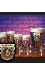 Serve your favorite beer in style with personalized glassware. These make great gifts for friends who love to entertain. Pints are sold as a set of 4. Hand washing recommended. Specify up to 14 characters including spaces and punctuation.