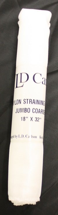 JUMBO NYLON FRUIT STRAINING BAG 18" x 32" Nylon Straining Bag- 18" x 32"- Coarse Mesh: This larger bag can hold up to 5-6 pounds of fruit (maybe more depending on the fruit) for you wine and beer making needs - Additional Information
