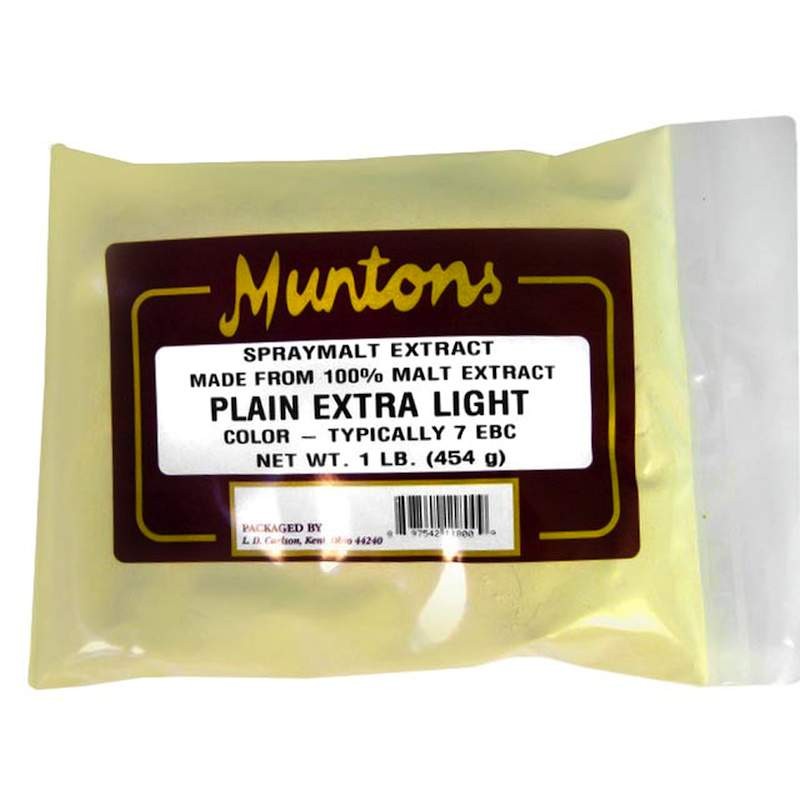 Muntons Dry Malt Extract is a spraymalt extract made from 100% malt extract. Plain Extra Light is for lighter colored beer, American Ales and Lagers. Color is typically 3 Lovibond or 7 EBC. - Additional Information