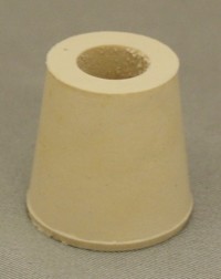 PURE WHITE GUM LABORATORY STOPPER - with 3/8" drilled center hole. Top diameter: 15/16" Bottom diame…