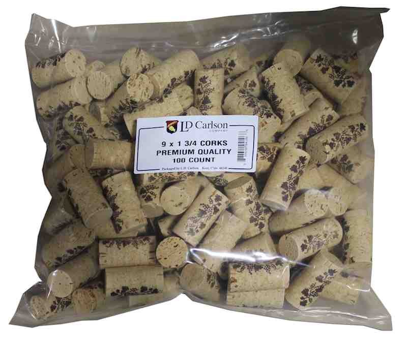 9X1 3/4 PREMIUM QUALITY STRAIGHT WINE CORKS 100/BAG