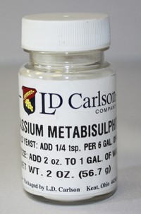 Potassium Metabisulfite effectively kills wild yeast and bacteria. The condition of your grapes and pH levels may vary the amount needed. This agent helps your yeast do its job. Sulfites also aid in inhibiting enzymatic browning in white wines, and improves the flavor when used correctly. Use 2 oz. per 1 gallon of water. A use 1/4 teaspoon to 5 gallons of Must. Dissolve sulphite in warm water before adding. - Additional Information